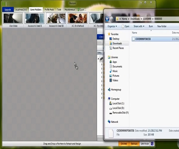 نقوم بسحب برنامج XeXMenu1.2-LIVE عن طريق سهم الفأرة الى