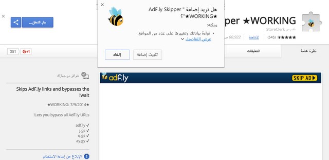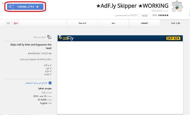 استخدام إضافة Adf.ly Skipper في متصفح جوجل كروم: