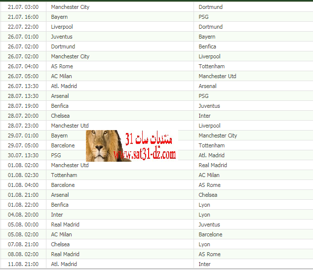 مواعيد المقابلات لمنافسات الكاس الدولية للابطال