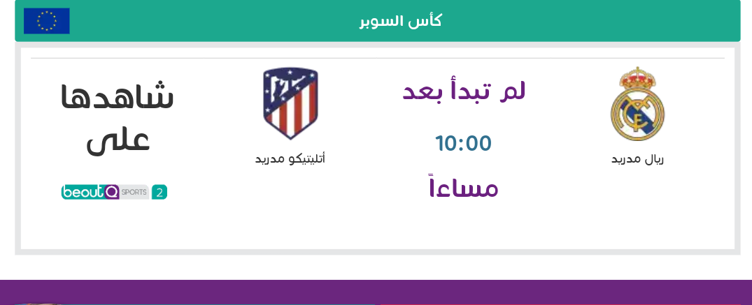 اعلنت قناة Beoutq عن نقل مباراة كأس السوبر الاسباني بين ريال مدريد *اتلتيكومدريد يوم الاربعاء على ساعة 8مساءا بتوقيت الجزائر