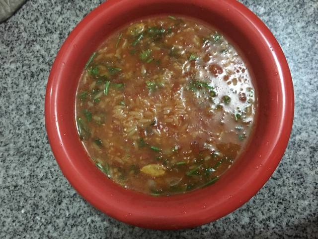 عند تمام النضج نضيف البقدونس والكزبرة ويقدم فورا ساخن