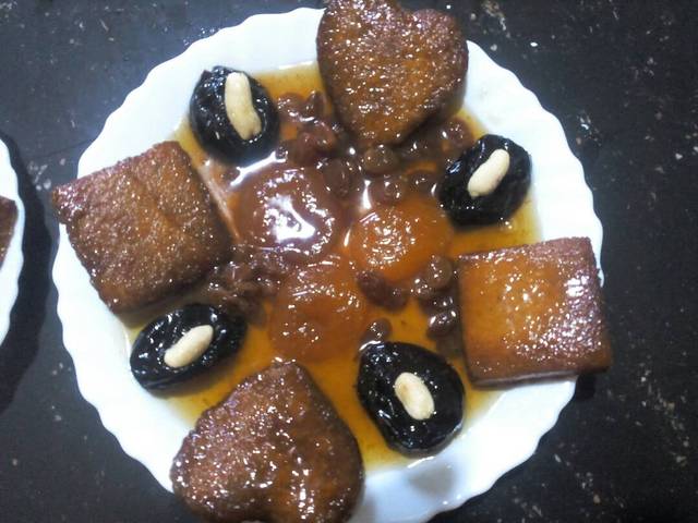 مرق الحلو : يوضع في القدر كوب زبيب وكوب مشمش مجفف و كوب سكر و ملعقة كبيرة زبدة و 2 كوب ماء مع 6 حبات قرنفل