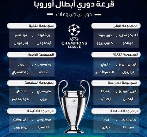 قرعة دور مجموعات رابطة أبطال أوروبا 2018/2019